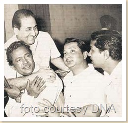 अगर आप मनोहारी सिंह के बारे में और जानना चाहते हैं तो ज़रा अंग्रेज़ी अख़बार DNA की इस लिंक पर जाएं । और मनोहारी दादा का इंटरव्यू पढें । ये तस्वीर मैंने इसी वेबसाईट से साभार ली है । ज़रा तस्वीर में मौजूद लोगों को पहचानिए । मोहम्मद रफ़ी साहब को तो आप पहचान गये होंगे । फिर हैं फिल्मों में बांसुरी बजाकर मशहूर हुए सुमन राज, फिर मनोहारी सिंह और सबसे दाहिनी तरफ विख्यात बांसुरी वादक पंडित हरिप्रसाद चौरसिया ।